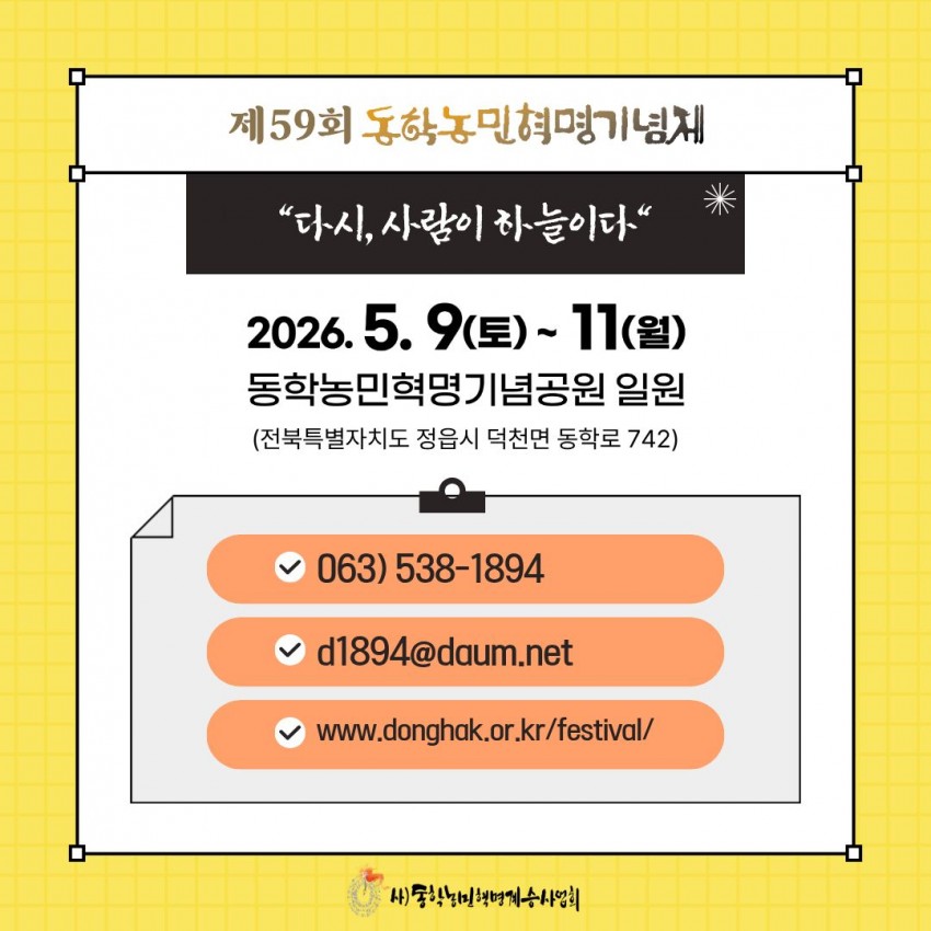 | 제목 | 2026년 제59회 동학농민혁명기념제 현수막걸기운동 안내 | ||